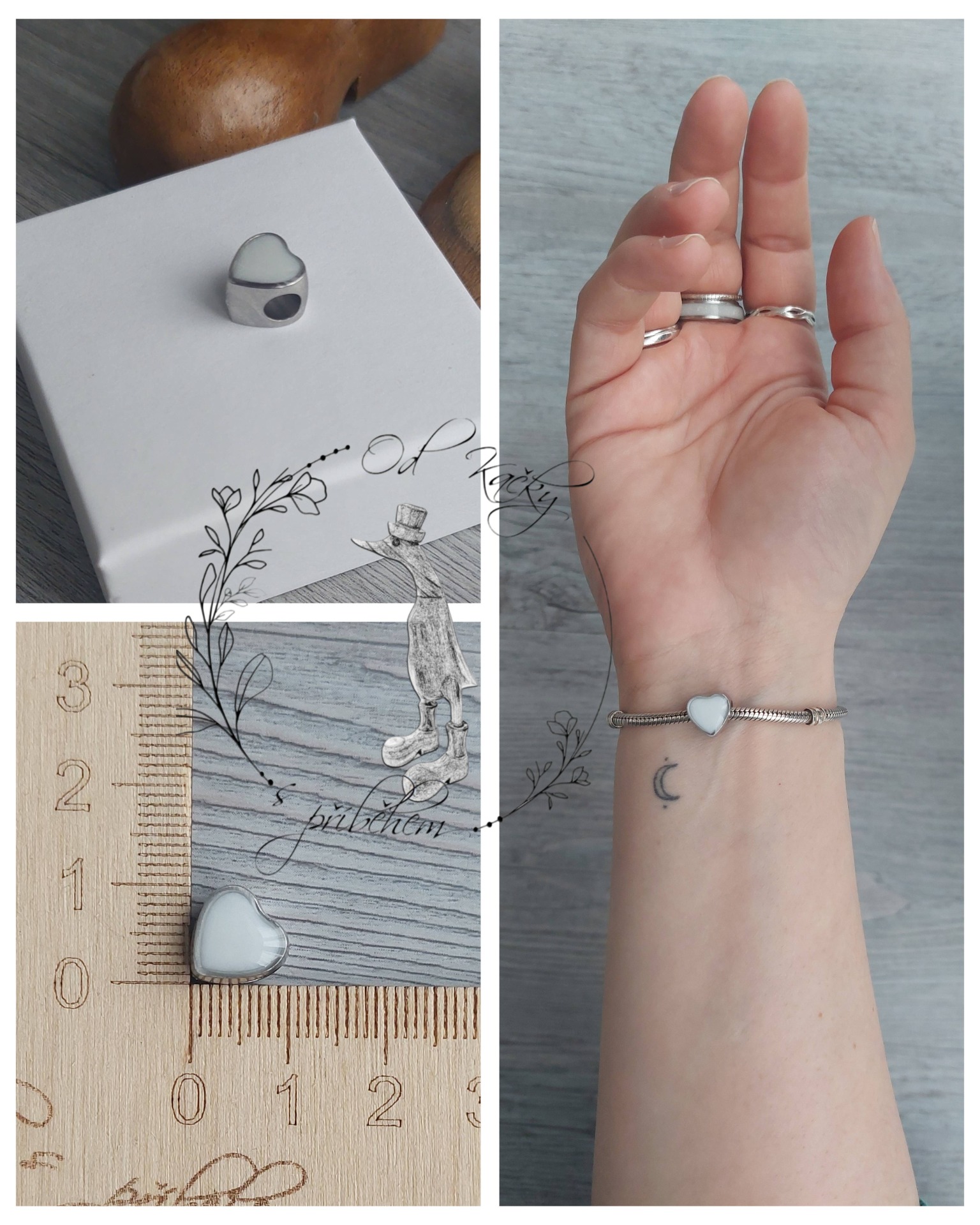 Celostříbrný korálek s lůžkem (tvary písmenek se zirkony, srdíčka, aj....) - 2190 Kč